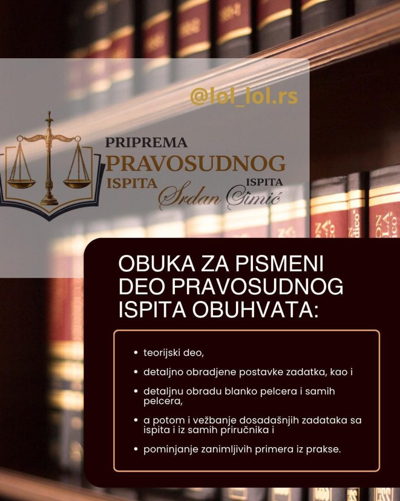 Najava predavanja za pismeni deo pravosudnog ispita kod predavača Srđana Simića.